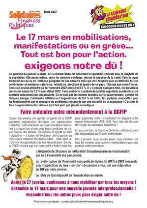 Exigeons notre dû - La question du pouvoir d’achat, de la rémunération est désormais la question centrale pour la majorité de la population. Elle passe même, selon les derniers sondages, devant la question de la santé.