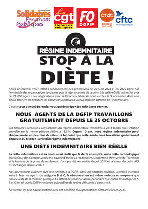 La dette indemnitaire est au moins aussi réelle que la dette en emplois ou la dette technologique que la Cour des Comptes a mis une dizaine d’années à reconnaître. L’Indemnité Mensuelle de Technicité et le barème de la prime de rendement n’ont pas été revalorisés depuis 2017 et la valeur du point ACF est inchangée depuis 2009 !