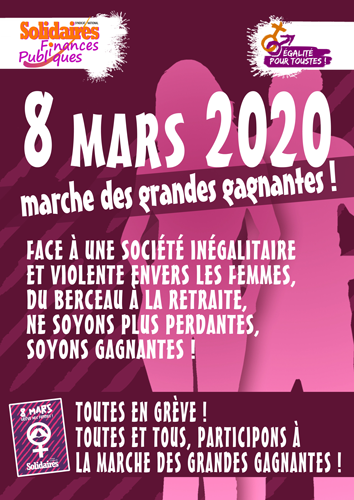 En ce 8 mars, un dimanche, jour qui n'est pas (encore ?) travaillé à la DGFiP, soyons toutes et tous mobilisé·es et dans la rue pour réclamer une véritable égalité entre les hommes et les femmes !