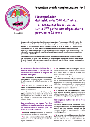 En attendant les annonces sur la 1ère partie des négociations prévues le 18 mars, un cycle très technique de négociations s’est ouvert aux Finances pour définir le régime de Protection Sociale Complémentaire (PSC) qui remplacera l’existant à compter de juin 2025.