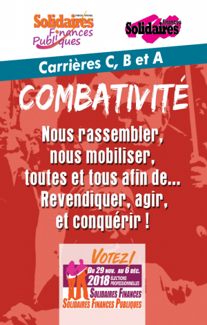Solidaires Finances Publiques défend les intérêts individuels et collectifs de tous les agents de la DGFP. En ce qui concerne les déroulements de carrière, les revendications de Solidaires sont exprimées à tous les niveaux : Fonction Publique, Ministère et DGFiP. De par notre organisation interne, des militants de Solidaires Finances Publiques sont appelés à siéger dans les instances de chacun de ces niveaux : CSFPE à la Fonction publique, CTM au Ministère, CT et CAP au niveau DGFiP.
