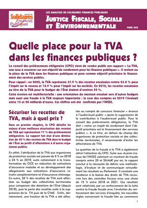- Quelle place pour la TVA dans les finances publiques ?