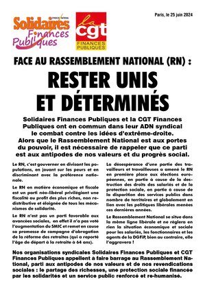 25 juin - Expression commune Solidaires Finances Publiques / CGT Finances PubliquesFace au Rassemblement National (RN) :