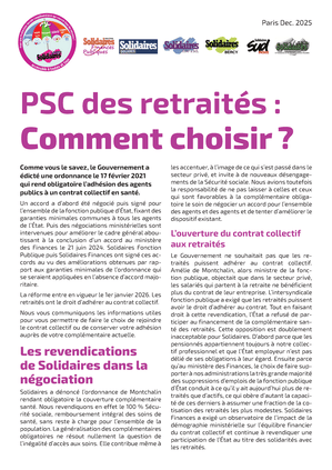 Le Gouvernement a édicté une ordonnance le 17 février 2021 qui rend obligatoire l’adhésion des agents publics à un contrat collectif en santé. La réforme entre en vigueur le 1er janvier 2026. Les organisations syndicales ont obtenu pour les retraité·es le droit d’adhérer au contrat collectif. Nous vous communiquons les informations utiles pour vous permettre de faire le choix de rejoindre le contrat collectif ou de conserver votre adhésion auprès de votre complémentaire actuelle.