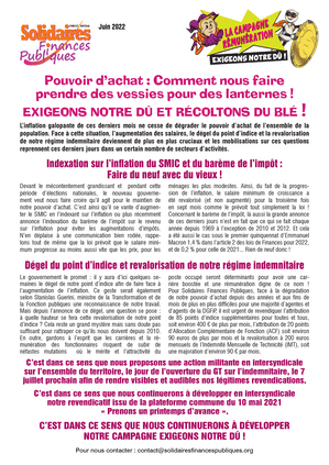 L’inflation galopante de ces derniers mois ne cesse de dégrader le pouvoir d’achat de l’ensemble de la population. Face à cette situation, l’augmentation des salaires, le dégel du point d’indice et la revalorisation de notre régime indemnitaire deviennent de plus en plus cruciaux et les mobilisations sur ces questions reprennent ces derniers jours dans un certain nombre de secteurs d’activités.