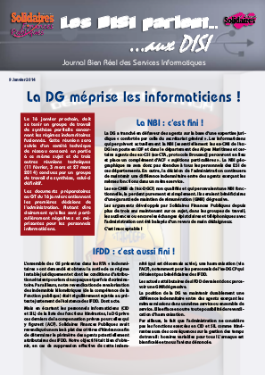 La DG méprise les informaticiens !La NBI : c’est fini !, IFDD : c’est aussi fini !Stagiaires : abus de droit !CAP numérique : silence radio